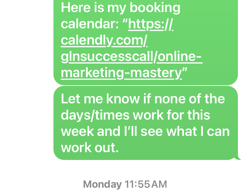There are a few things to unpack here. Use the exact verbiage here, don’t deviate. Send the first 4 messages separately versus as a long paragraph. This will make you look like a real person versus a bot. Bots don’t text like this and people notice the difference. I get alot of “Yes” responses with this text. So, here are “the next steps” and how they played out with new prospect Blanche. I refer to her as a prospect because she also joined 2kps and told me how much she is willing to invest and the best time for her to receive a call. Before dropping the next text, we want to ask for permission. Questions are always very important.